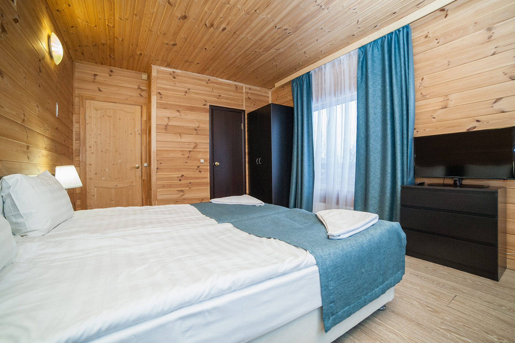 Деревянный номер оформлен в уютном стиле из натуральных материалов. Панорамные окна пропускают много света, номер также располагает выходом к зоне патио, где можно насладиться барбекю, природой и свежим воздухом. Номер находится на первом этаже гостиничного деревянного корпуса. Разрешено проживание с питомцем.