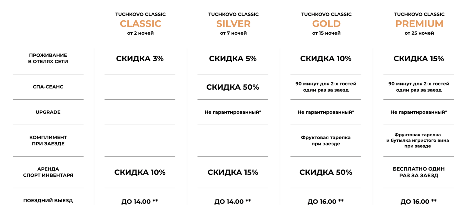 Программа лояльности применима к тарифам, не входящим в перечень специальных предложений и праздничных заездов.