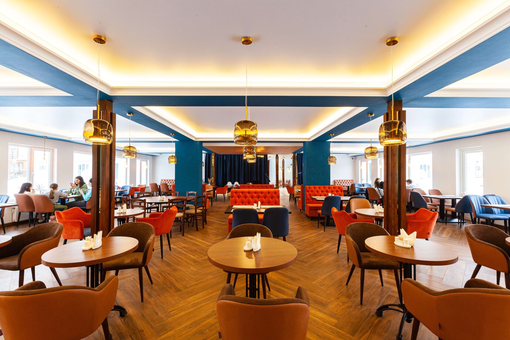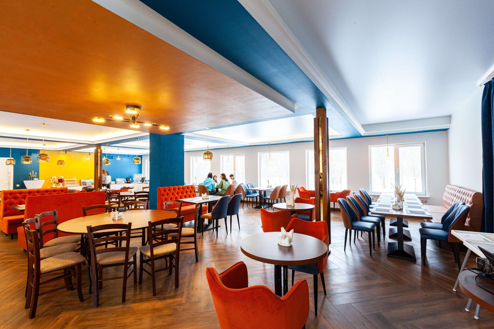 Ресторан расположен в главном корпусе гостиницы. В период с мая по сентябрь открыта летняя терраса. Основное меню представляет блюда европейской кухни.