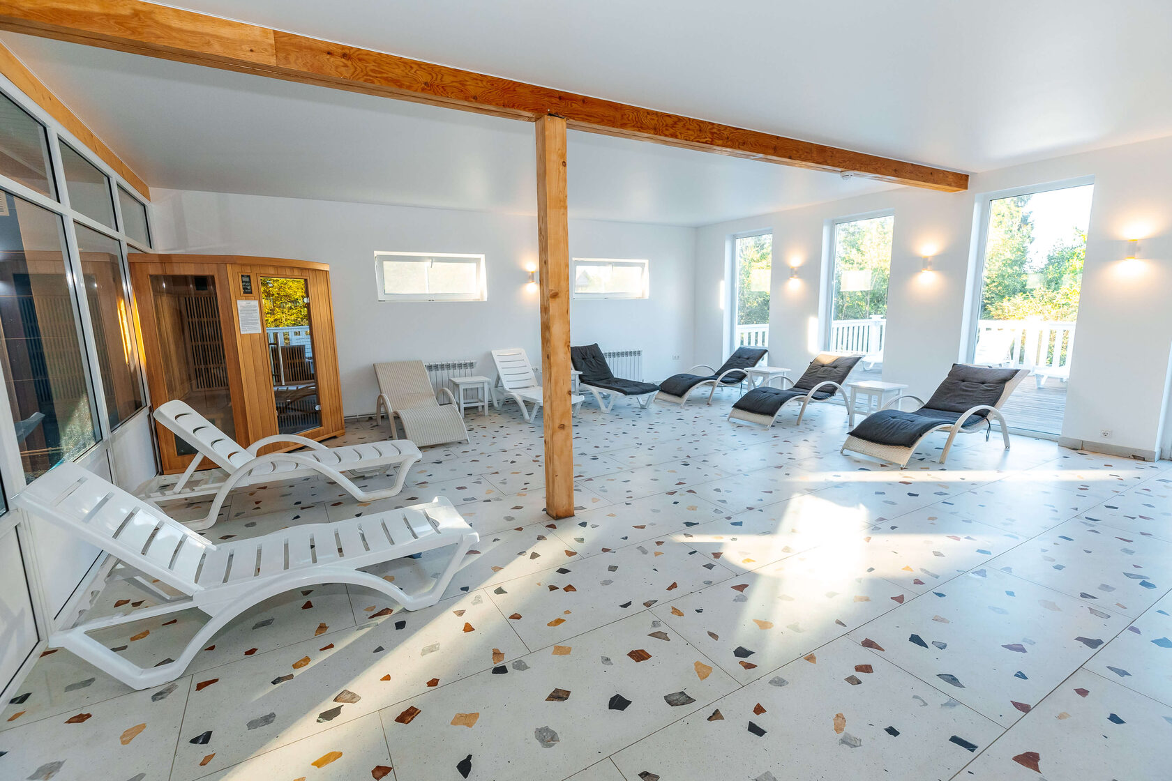 Спа комплекс приглашает всех гостей отеля насладиться СПА процедурами и массажем, а также посетить бассейн, 3 вида саун, соляную комнату, хаммам, джакузи и большую релакс зону.
